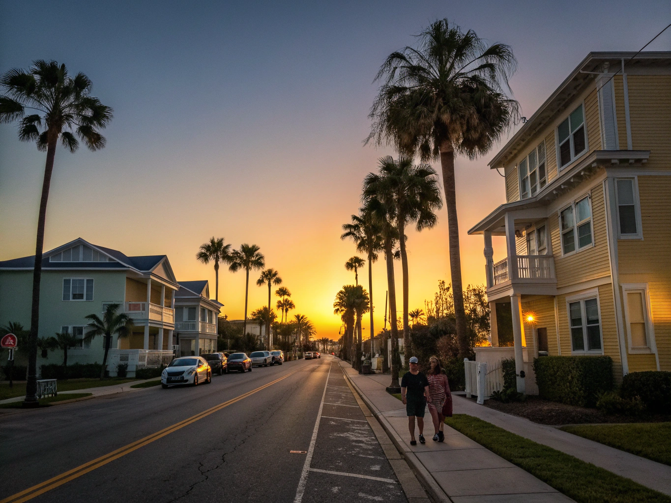 Lush Tampa estate at sunset